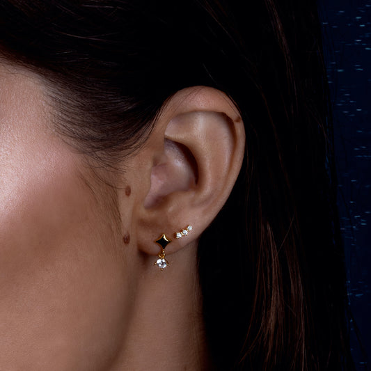 Chez Ray Paris, nous avons choisis de faire nos bijoux d'oreilles et nos bijoux de corps à base d'argent massif 925 doré à l'or 18k ou rhodié, afin de préserver la brillance et de limiter le ternissement naturel du métal.